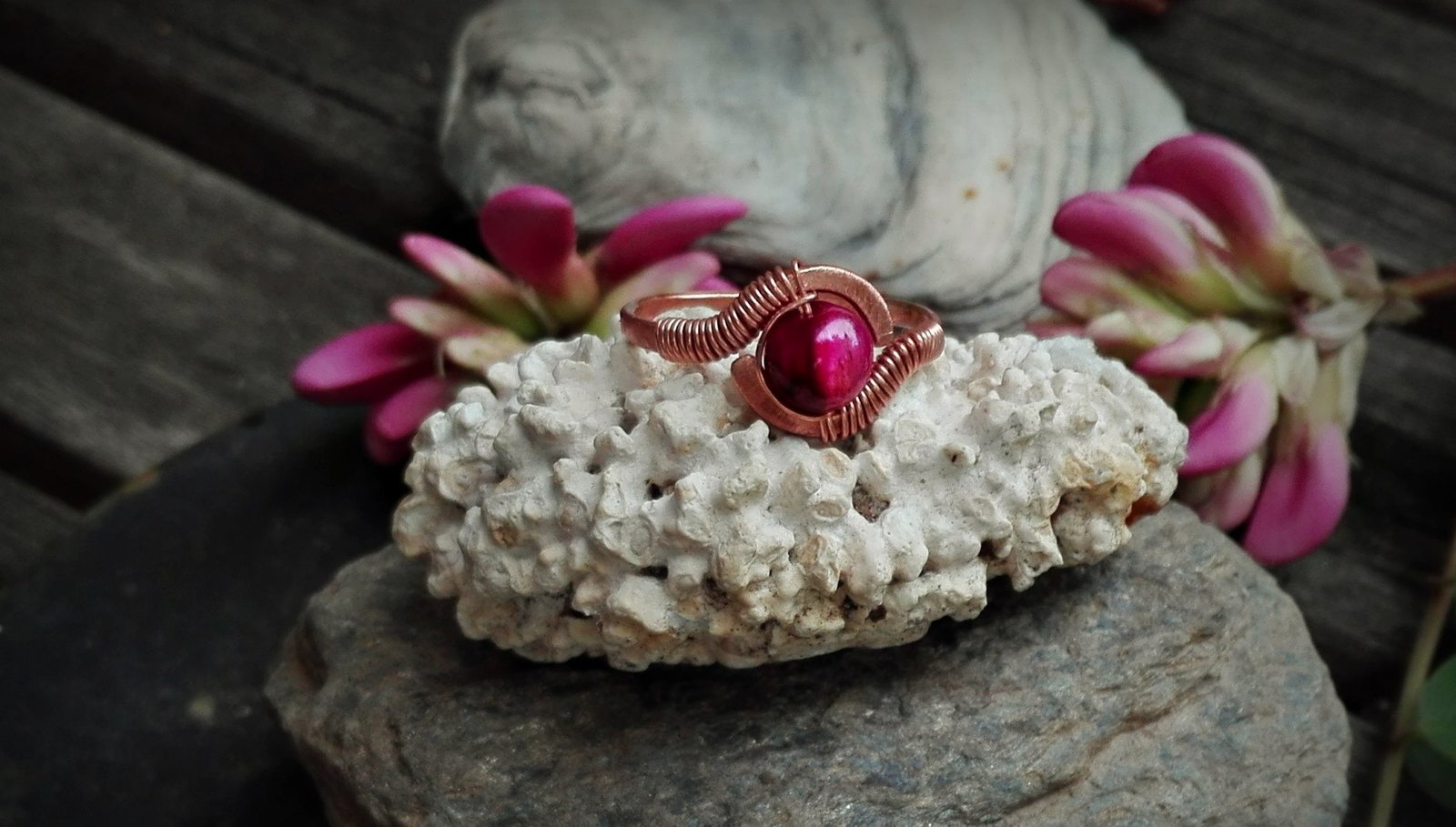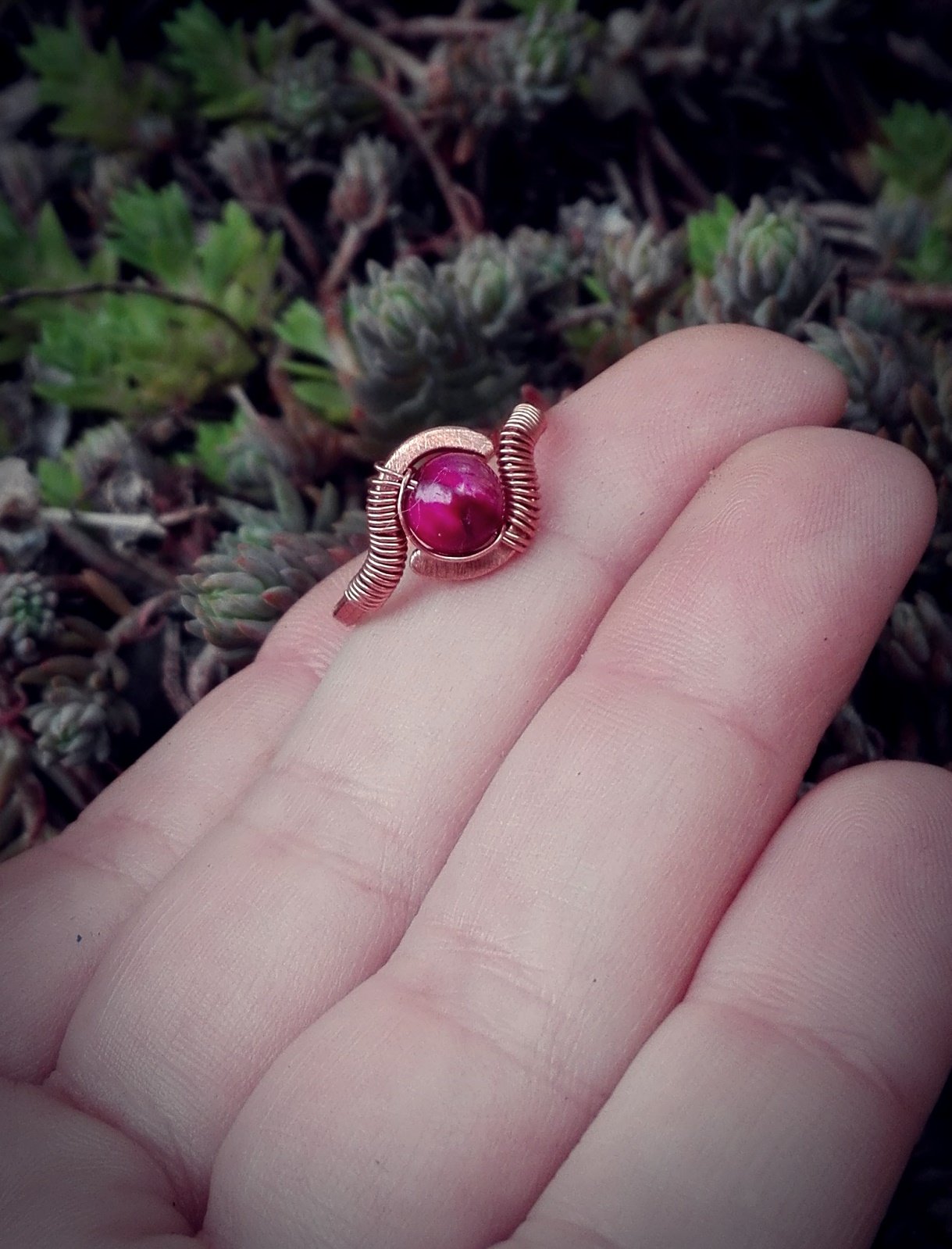 Az ékszerek alapja mind egyedi tervezés alapján készül vörösréz, illetve rézbetétes nikkelmentes ezüst drót felhasználásával. Minden darab egyedi és a természet motívumai inspirált minden részletet. Szeretettel, kézzel hajlítva alakul ki a végleges forma, amire gondos kalapálás után ásvány gyöngyök/kövek kerülnek.