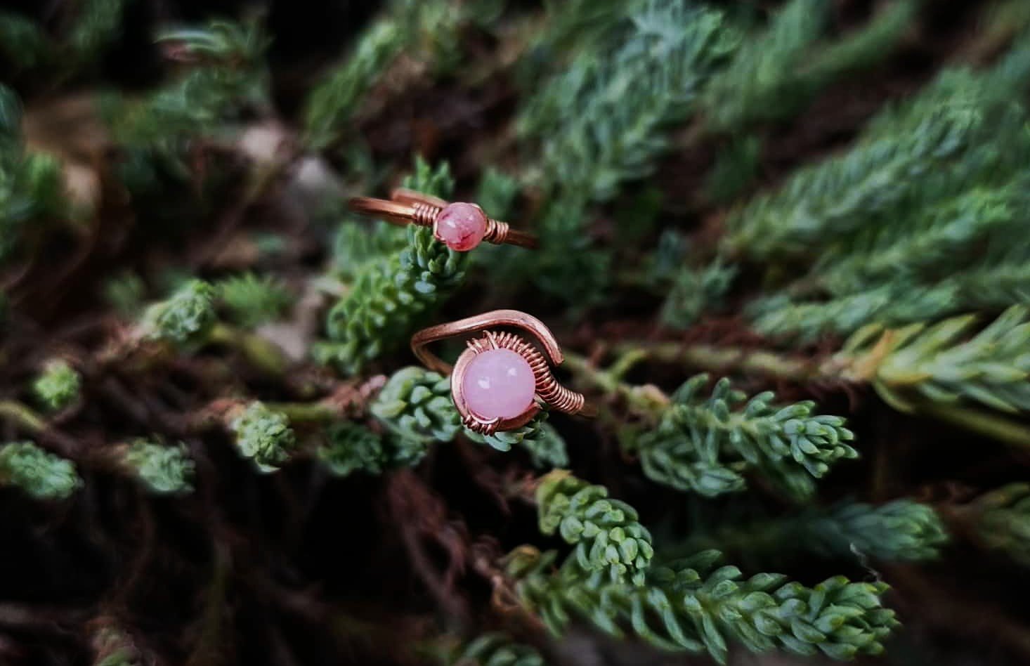 Az ékszerek alapja mind egyedi tervezés alapján készül vörösréz, illetve rézbetétes nikkelmentes ezüst drót felhasználásával. Minden darab egyedi és a természet motívumai inspirált minden részletet. Szeretettel, kézzel hajlítva alakul ki a végleges forma, amire gondos kalapálás után ásvány gyöngyök/kövek kerülnek.